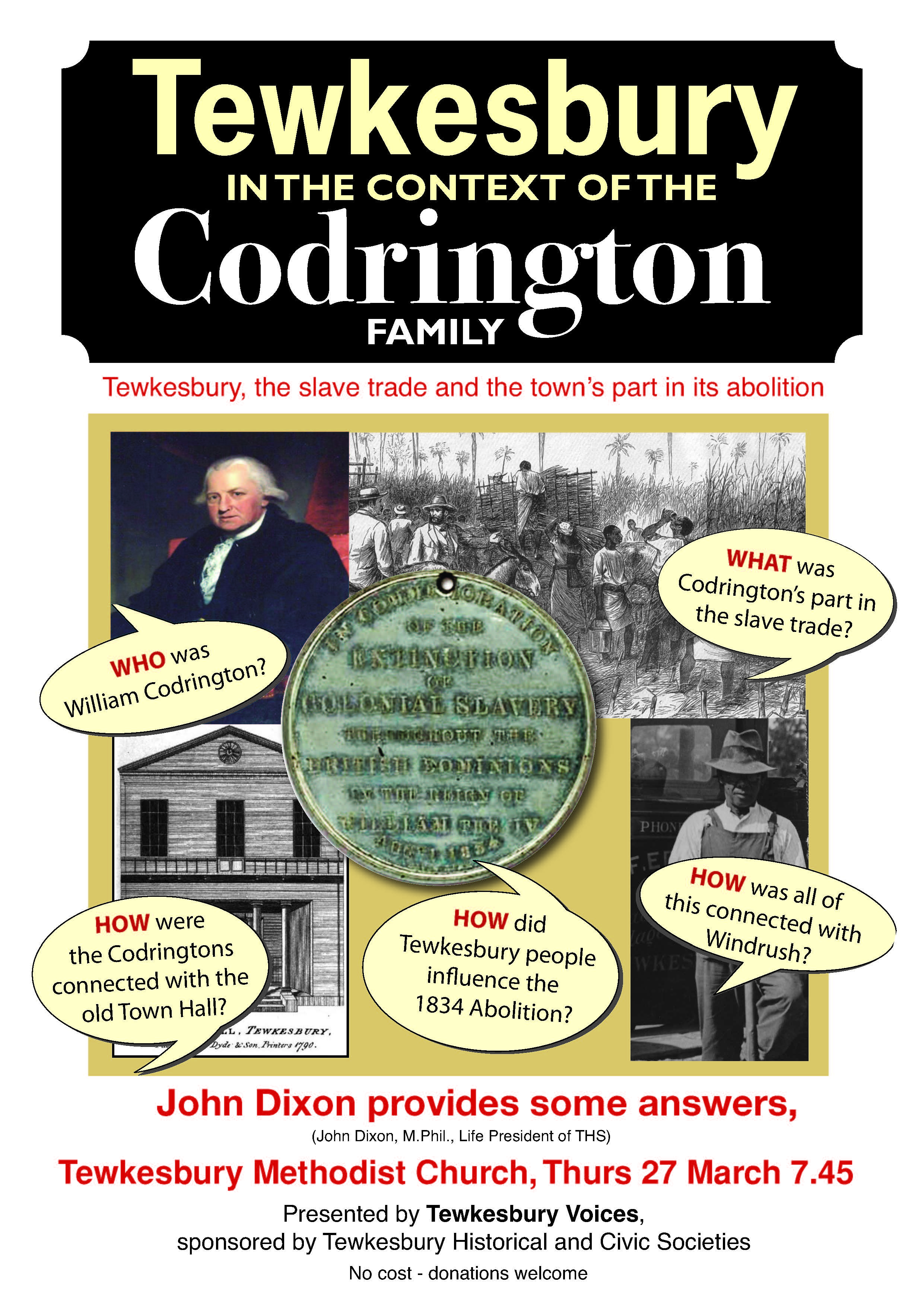 As part of the Tewkesbury Voices programme, local historian John Dixon delivered a thought-provoking talk on Thursday 27th March 2025, titled Tewkesbury in the Context of the Codrington Family at the Tewkesbury Methodist Church.